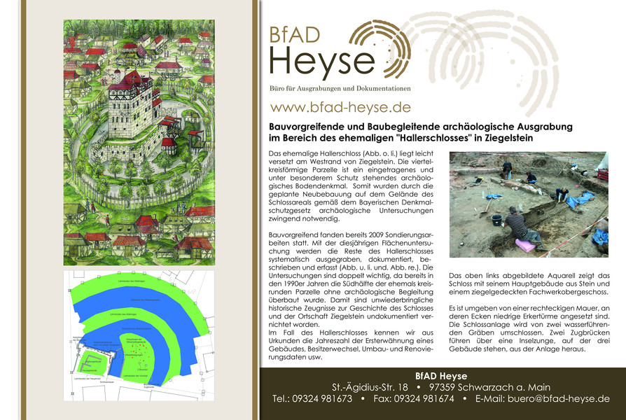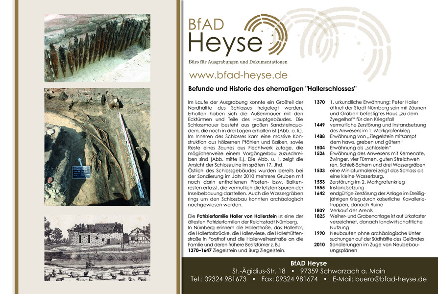 J.-M. Hafner, S. Münzel, T. Teufel und K. Wildauer: Bauvorgreifende und Baubegleitende archäologische Ausgrabung im Bereich des ehemaligen „Hallerschlosses“ in Ziegelstein. (Erstellt für den Tag des offenen Denkmals in Nürnberg am 09.09.2012)